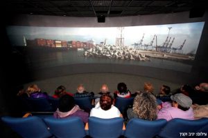 מבט אל הנמל מאודיטוריום של מרכז המבקרים בנמל. צילום יח"צ של אגף הדוברות בנמל אשדוד